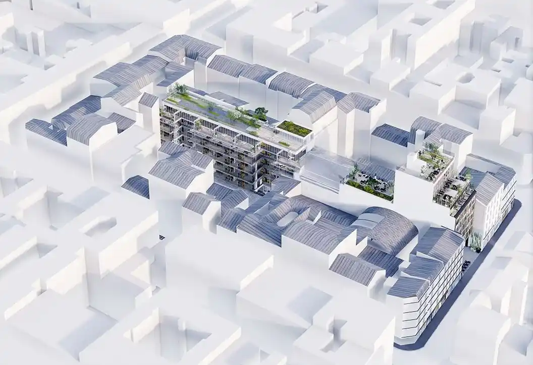 Construction d'un centre commercial et de bureaux à Aubervilliers.